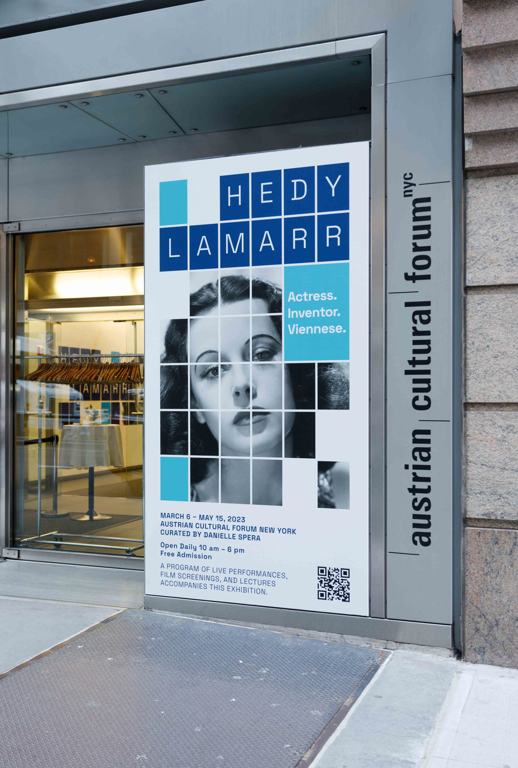 Mit großer Freude durfte ich zum vierten Mal eine Ausstellung im Österreichischen Kulturforum New York (acfny), untergebracht in einem Landmark-Gebäude des österreichischen Architekten Raimund Abraham, erstellen. Nach einer Einladung durch die neue Direktion des acfny Dr. Susanne Keppler-Schlesinger gestalteten Stefan Fuhrer und ich die Ausstellung Hedy Lamarr. Actress. Inventor. Viennese.