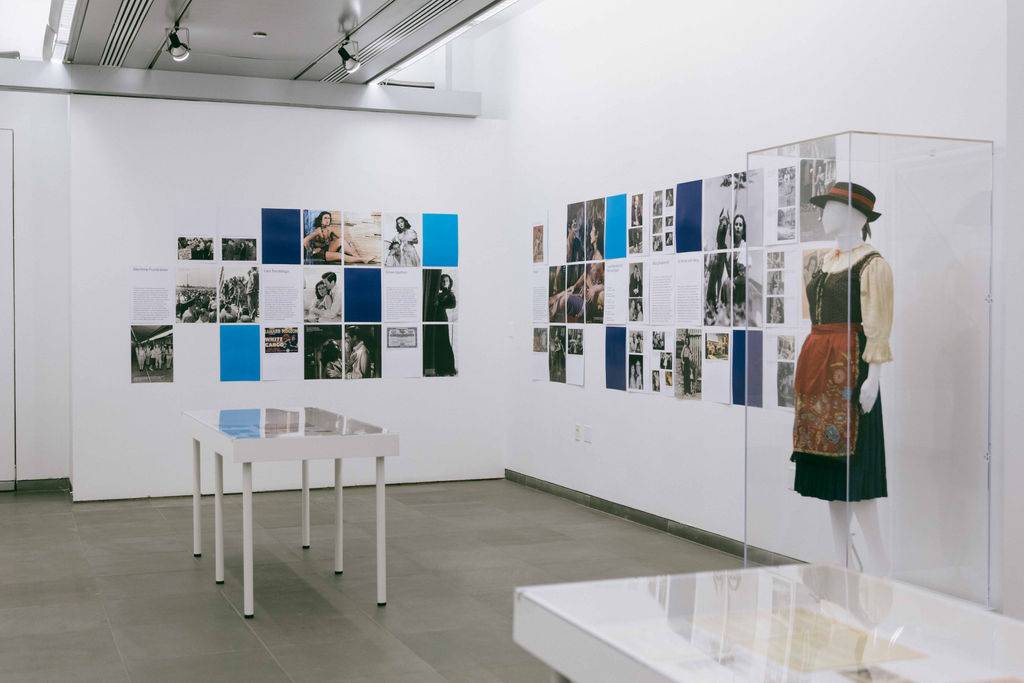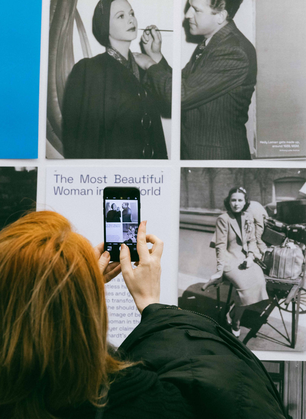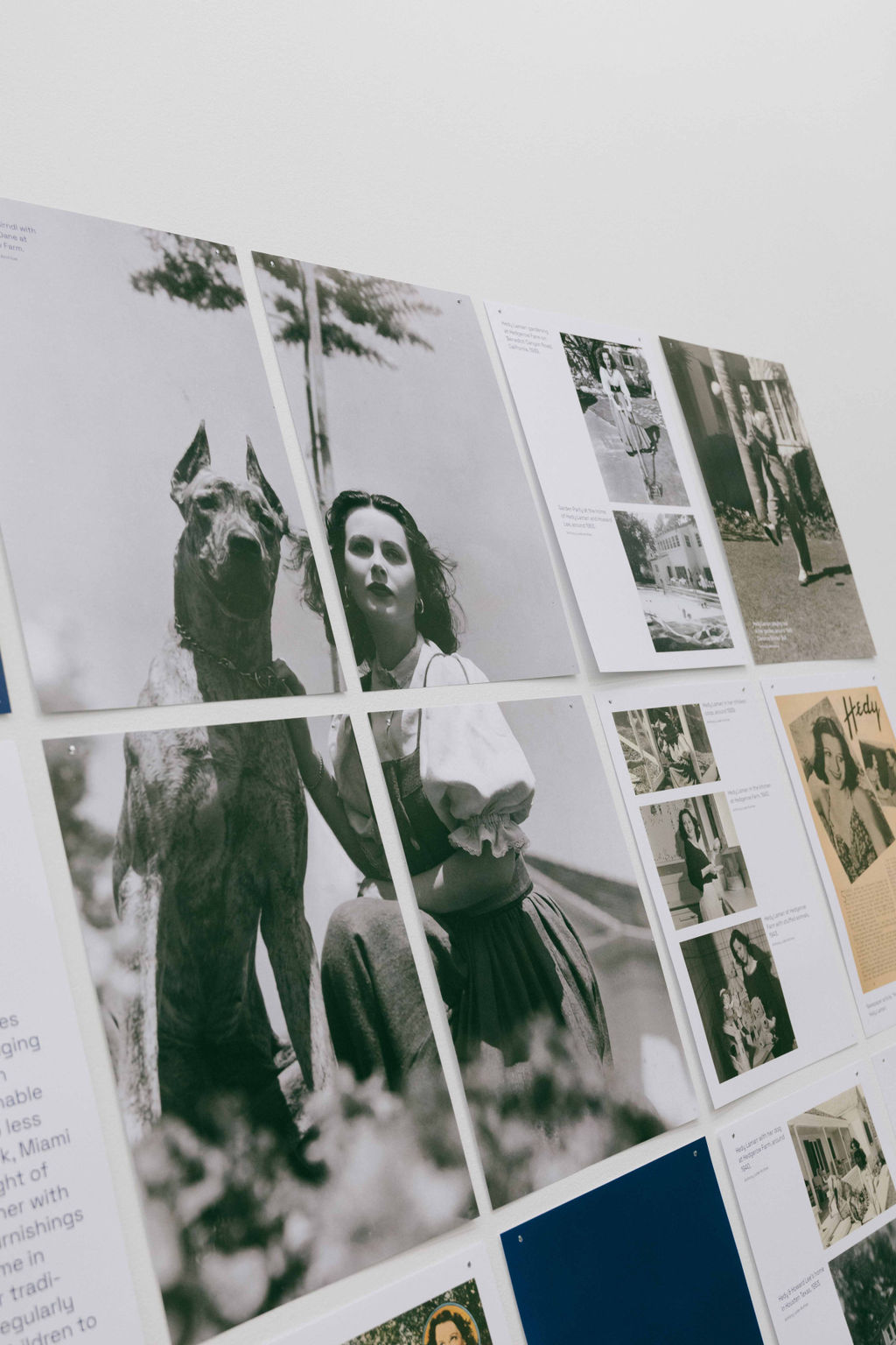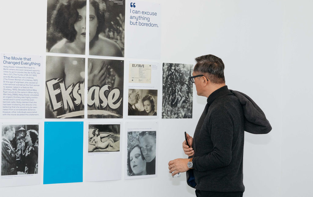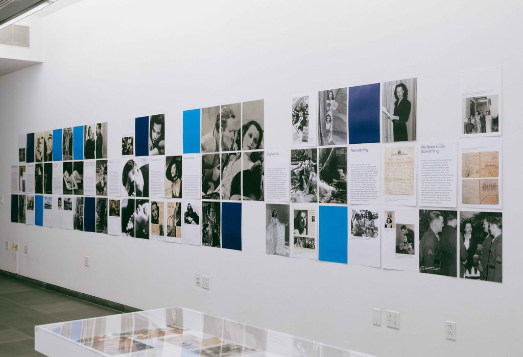 Auf den vier Ebenen des österreichischen Kulturforums zeichnen wir den Weg des facettenreichen Lebens von Hedy Lamarr nach. Stefan Fuhrer griff in der Gestaltung der Ausstellung die technischen Fähigkeiten auf, die Hedy Lamarr bereits als Kind auszeichneten. Nach Berichten ihrer Familie zerlegte Hedy Lamarr ihre Spielzeuge, z.B eine Spieluhr, die in einem Holzfigürchen eingebaut war und setzte sie anschließend professionell wieder zusammen. Sie wollte einfach herausfinden, wie die Mechanik funktionierte. Stefan Fuhrer hatte für die Ausstellung im acfny die großartige Idee, Kacheln aus Papier zu produzieren, die den Eindruck der vielen Facetten des Lebens von Hedy Lamarr, aber auch das Thema des Zerlegens, bzw. Zusammensetzen eines Puzzles widerspiegeln. Die in weiß und blau gehaltenen „Kacheln“ ziehen sich durch die Ausstellungsräume und illustrieren die Karriere der Schauspielerin, ihre Liebe zu Österreich, sowie ihre Stationen als Erfinderin und Künstlerin. Hier möchte ich mich auch ausdrücklich bei Theresa Absolon für ihre kuratorische Assistenz sowie für die Betreuung der Sammlung bedanken.